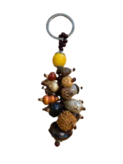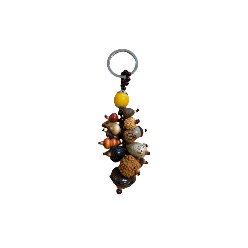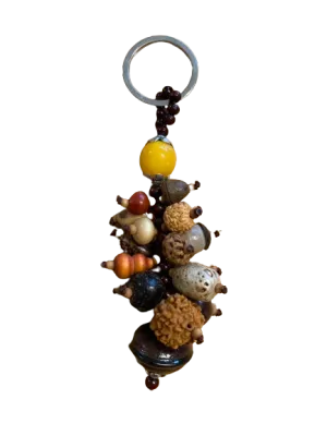 Porte-clés décoratif avec anneau métallique et grappe de graines en bois