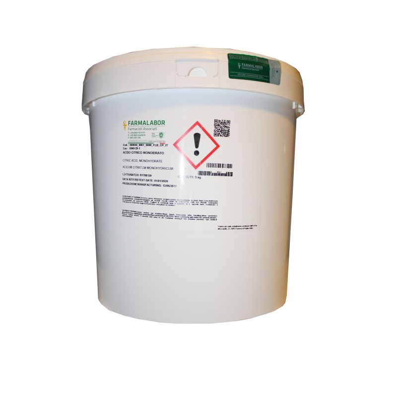 MONOHYDRATE ACIDE CITRIQUE E 330 - 5 kg FARMALABOR avec CERTIFICAT D'ANALYSE Origine de la production : ITALIE/EUROPE PRODUIT A USAGE PROFESSIONNEL