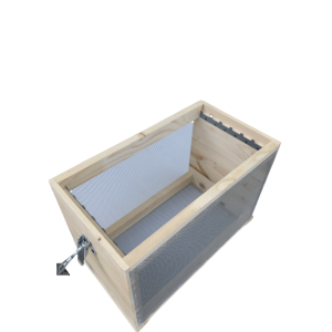 Ruchette en bois D.B. à 6 cadres, avec parois latérales et fond en maille, fermeture totale avec crochets et poignée de transport. Possibilité d'insérer des plaques latérales en polystyrène (NON INCLUES) (Code PI501/B)