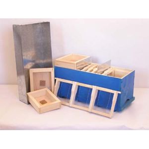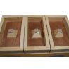 Avec 3 couvercles de ruche (un pour chaque compartiment), toit en tôle galvanisée, 3 entrées d'abeilles avec disque 4 positions comme porte - 2 d'un côté et 1 de l'autre Dimensions intérieures de la ruche : 45 x 25,5 x h 19 cm.