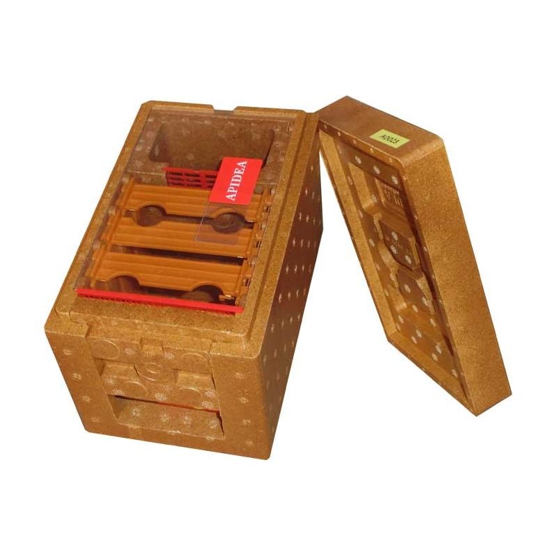 Système breveté. Fabriqué en plastique de qualité alimentaire. PRINCIPE DE FONCTIONNEMENT : Avec notre système, la reine pond directement dans le dôme. Permet l'élevage de la larve pendant 6 à 24 heures. Dimensions du cupolarve : 147 X 130 X 28 mm Le cupolarve se compose de 3 parties principales : ? 1 corps alvéolaire composé de 110 alvéoles et 1 réservoir de candi pour l'introduction de la reine. Les 110 alvéoles reçoivent 110 dômes en plastique (non fournis) ou 110 dômes en cire (non fournis) ? 1 grille d'exclusion de la reine ? 1 plaque transparente CONSEILS D'UTILISATION : Découpez un rectangle dans un nid d'abeilles de couvain au centre du cadre (contre le dessus en bois) de la taille correspondant à la cupolarve. Fixer la cupolarve avec deux vis à bois dans les deux trous correspondants. Placez-la à l'intérieur de la famille (au milieu du couvain) sans la grille à reine. L'odeur de la reine et la construction de ponts de cire faciliteront la ponte du couvain suivant. Nourrissez la reine quatre jours avant, jusqu'à ce qu'elle soit introduite. L'extraction du dôme doit se faire lorsque la larve à l'intérieur est âgée de 6/24 heures (l'extraction avec la pièce "jeu de la reine" (HY G-0009) est recommandée). Si les conditions d'élevage sont respectées (SAISON-TEMPERATURE-NUTRIENTATION-DOMAINE DU COVEN bien protégée etc.) tout devrait bien se passer. Il est possible d'immerger le cupolarve dans de la cire fondue avant de le placer dans la famille (dans ce cas, ne pas dépasser 65°).