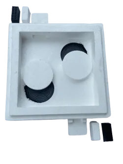 - 1 fondo con 2 finestre di areazione + 2 chiusure rotonde per copertura finestre di areazione, 2 entrate api ad incastro , 2 chiusure entrata api, 2 chiusure areate entrata api per trasporto
