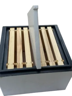 - Corpo nido composto a 2 scomparti separati, con 6 telaini mezzo melario in legno e parete divisoria.