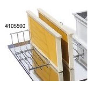 Rastrelliera porta-telaini, di acciaio inox, capacità di 9 favi disopercolati. posti verticalmente dentro il coperchio (Cod. LA 4105110) del banco da tavolo, (Cod. LA 4106) , può essere usato come vassoio