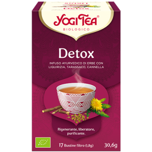L'Infuso Detox di Yogi Tea contiene una combinazione di erbe e spezie che vengono usate da secoli in India per favorire il processo interno di purificazione del corpo, attraverso la regolazione delle energie del fuoco e dell’aria.