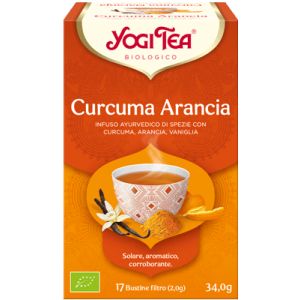 Curcuma Arancia Se fai splendere il sole dentro di te, illuminerà anche la tua vita! In questo infuso, la curcuma corroborante, l’arancia dolcemente fruttata e la vaniglia deliziosamente morbida si uniscono per offrirti un’esperienza impareggiabile: nella tazza l’infuso si colora d’oro intenso, viziandoti con il suo profumo deliziosamente speziato, a cui si aggiunge un gusto senza pari. È questa la vera ricchezza. Prova YOGI TEA® Curcuma Arancia da solo oppure leggermente dolcificato con del latte o un sostituto vegano del latte. L’infuso per chi assapora con il cuore